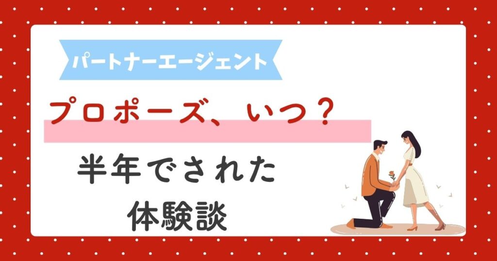 パートナーエージェントでの活動の流れの中で、「プロポーズはどのくらいのタイミング?」と思っている方は多いのではないでしょうか。 結婚相談所ってすごいプロポーズが早いイメージで、スピード感についていけなさそう… 入会前、同じこと思っていたよ!... -