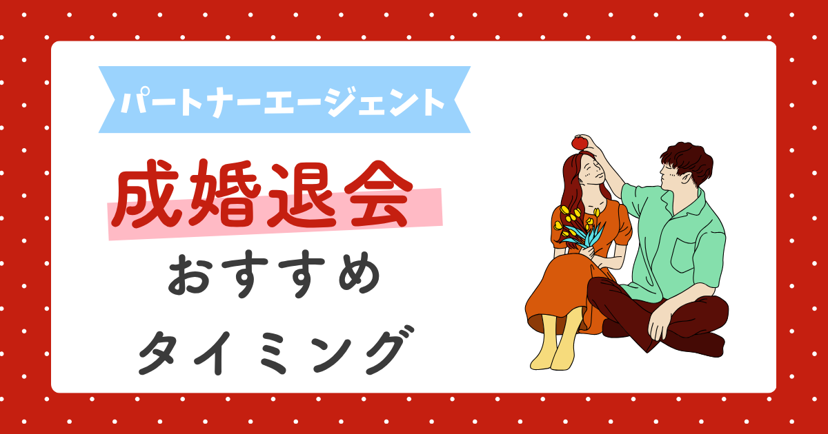 結婚相談所ごとに定義が異なる「成婚退会」。この記事では、パートナーエージェント卒業生である立場から、公式サイトでは書かれていない、成婚退会におすすめのタイミングやその後について触れています。